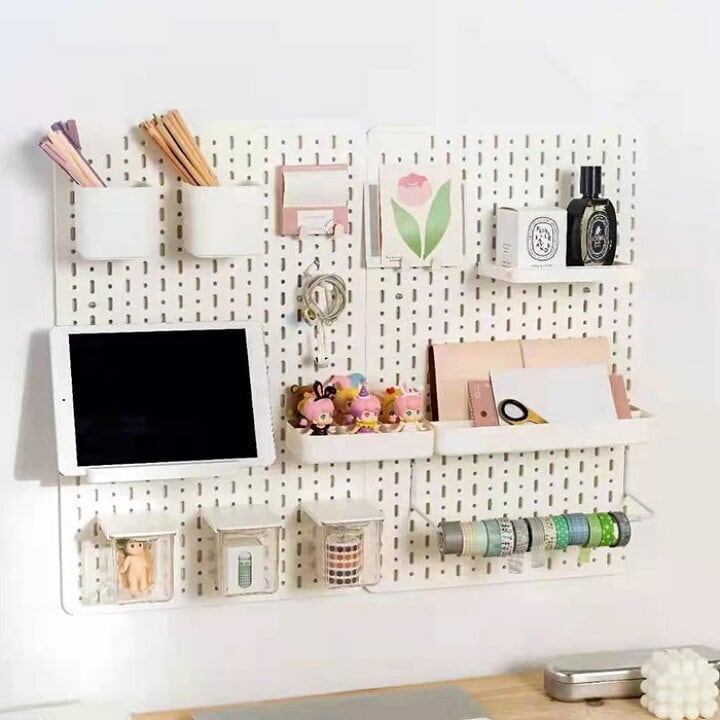 有孔ボード×2枚 書斎 寝室【清新風・お洒落装飾9点セット】ワンルーム 自宅 事務所 オフィス リビング 壁面収納 壁掛け 取付簡単 工具不要 耐荷重20kgホワイトインテリア収納560x360x5mmペグボード パンチングボード 小物パーツ付き | 橘品女子CitrusGrace